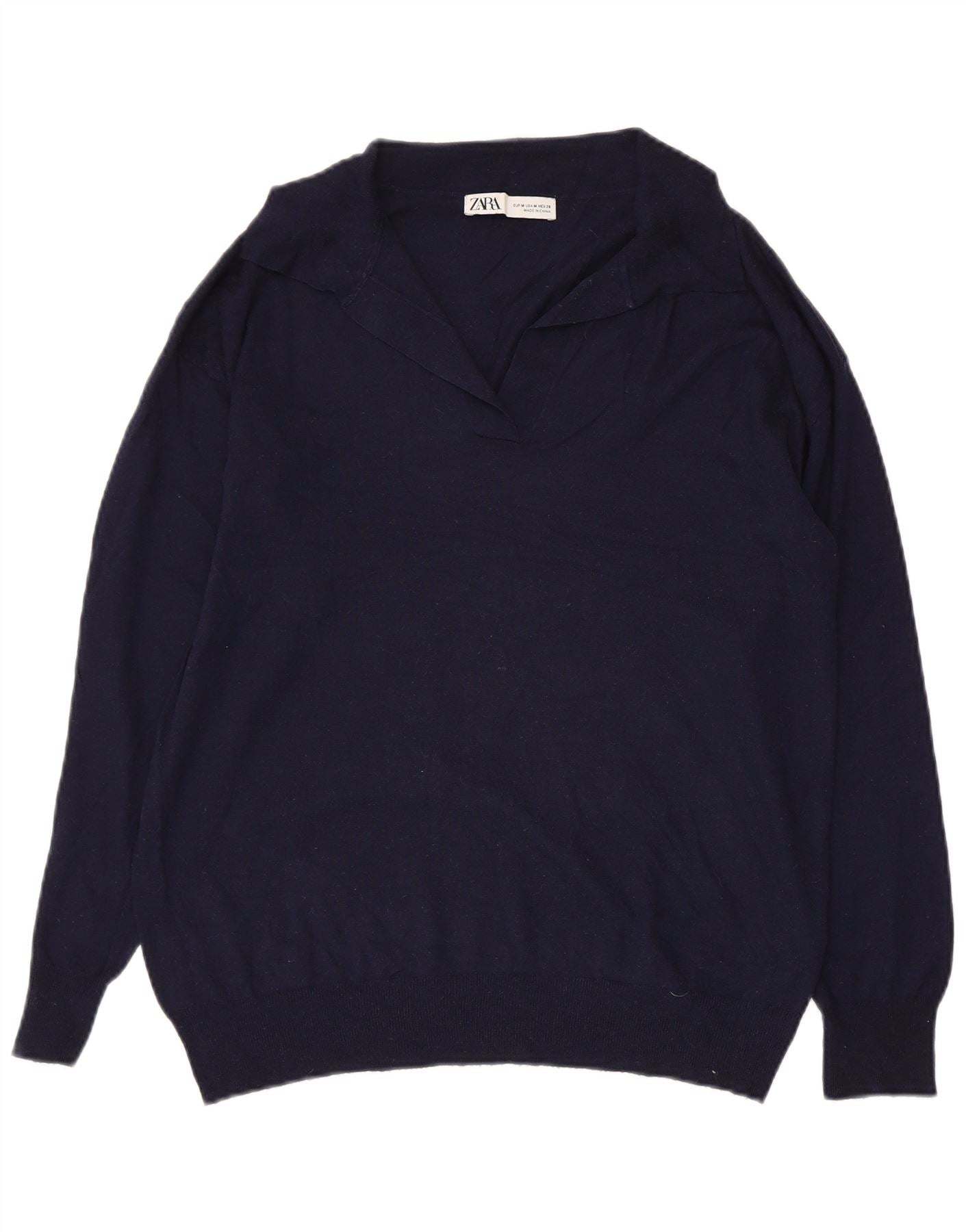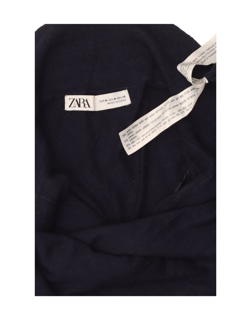 Suéter feminino ZARA com gola polo Reino Unido 14 médio azul marinho acrílico