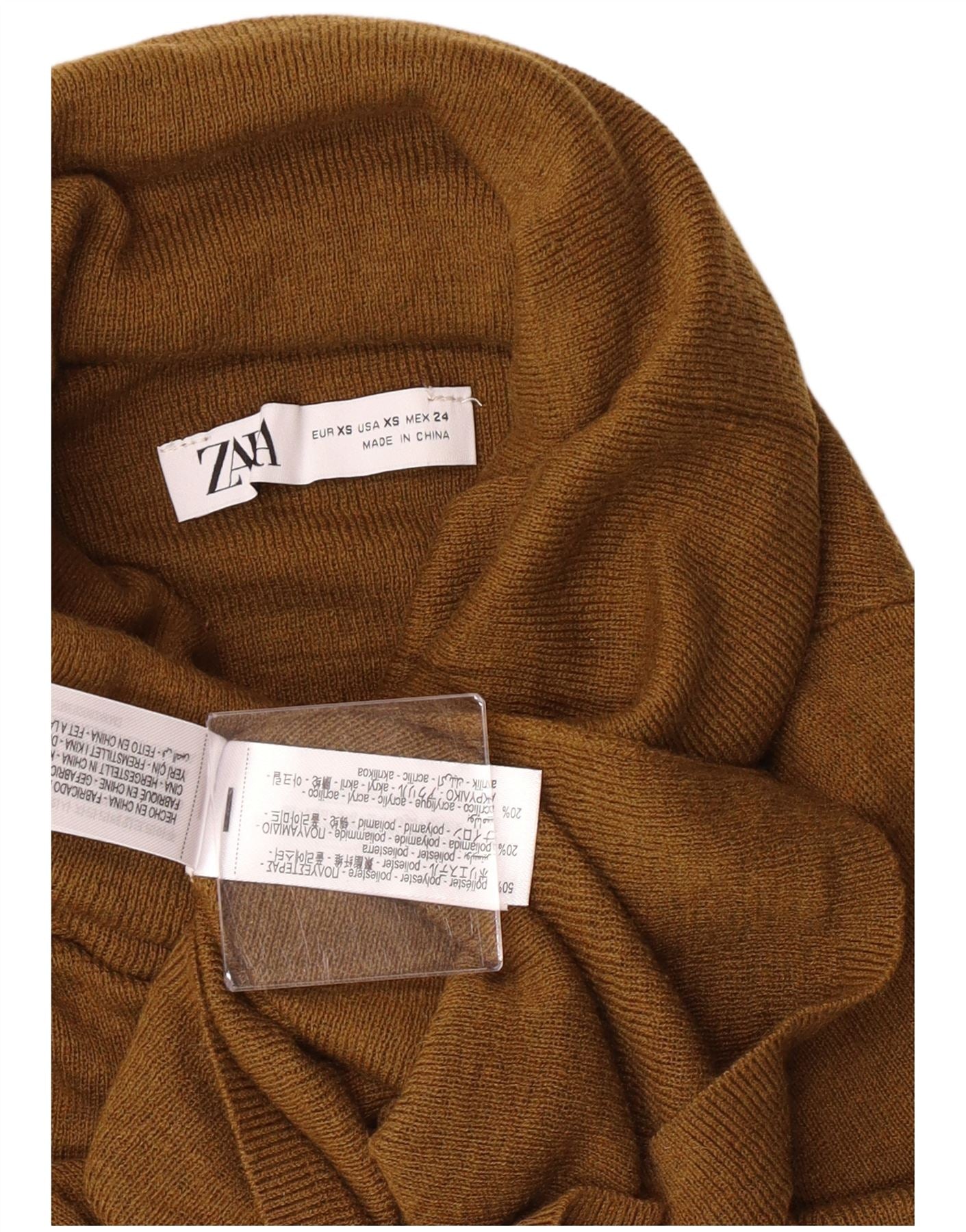 Suéter feminino Zara com gola redonda UK 4 XS cáqui poliéster