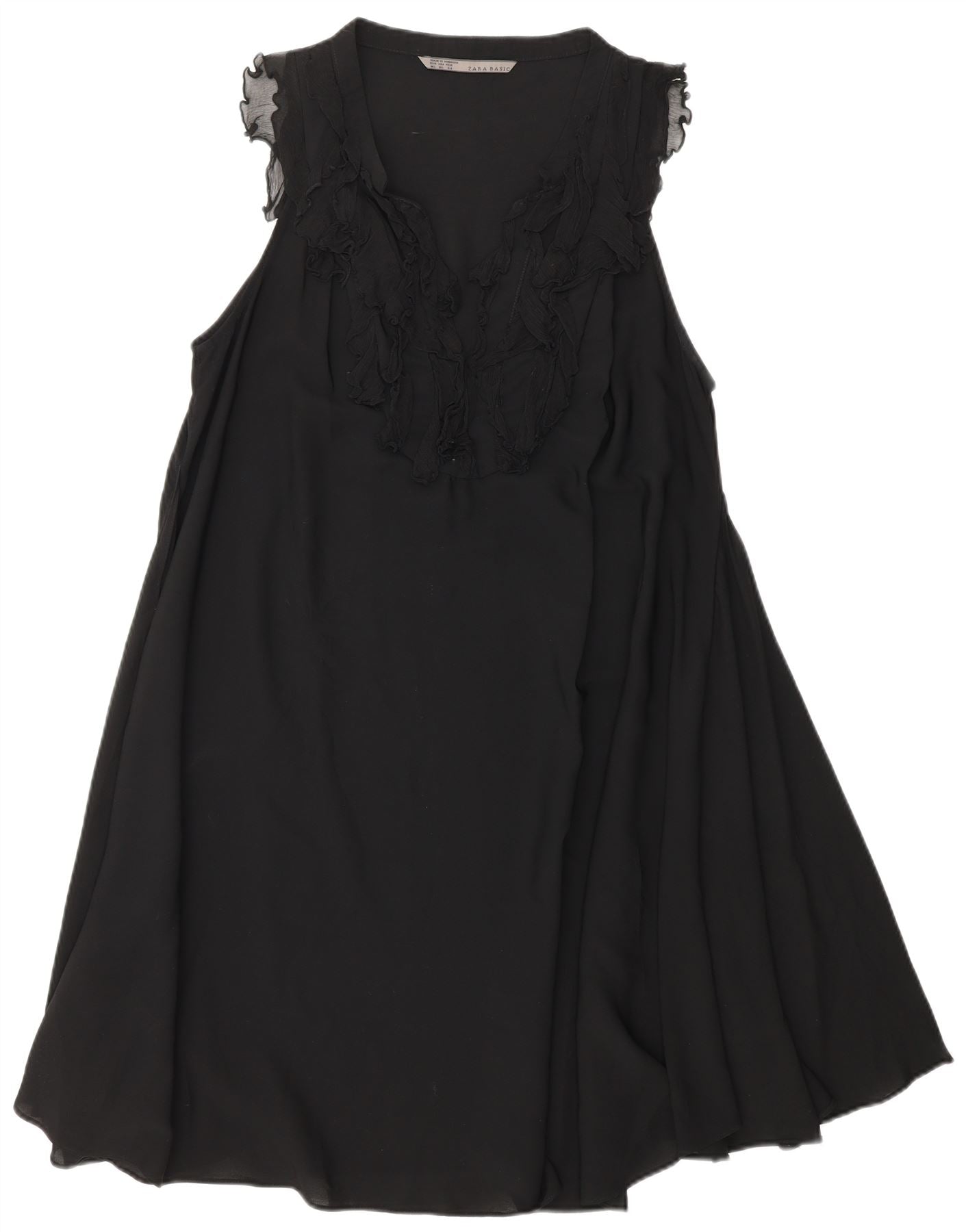 ZARA Womens Ruffle Front A-Line Dress UK 18 XL Black Polyester