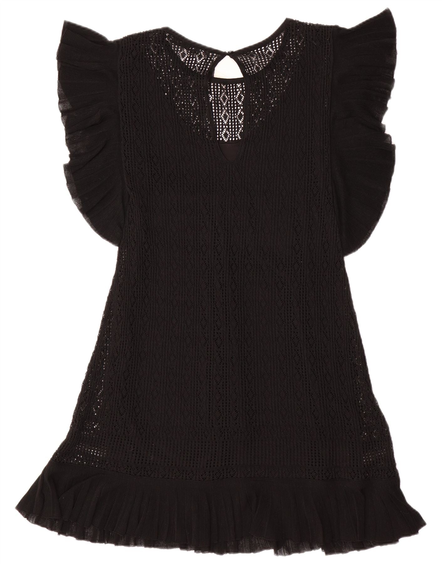 ZARA Vestido feminino de mangas curtas, Reino Unido 12, médio, preto, poliéster