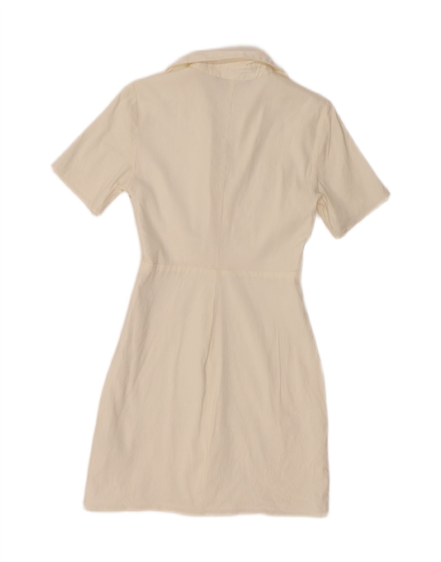 Vestido feminino ZARA com bainha de mangas curtas Reino Unido 10 pequeno off white viscose