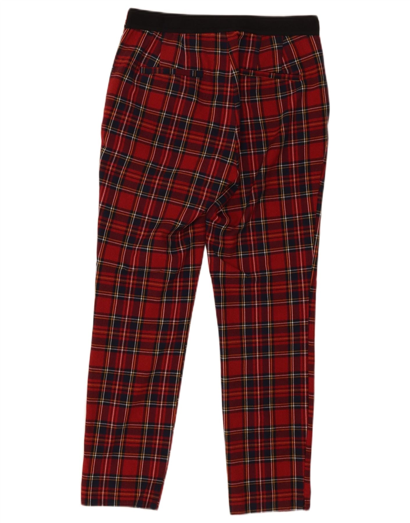 Zara Calça Chino Feminina Skinny Médio W28 L26 Poliéster Xadrez Vermelho