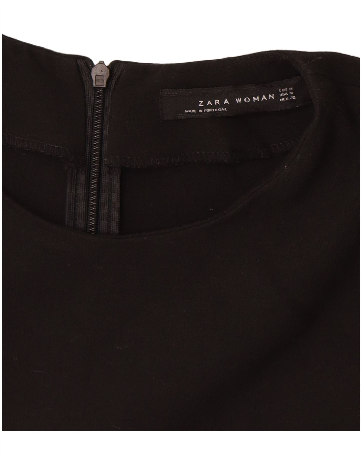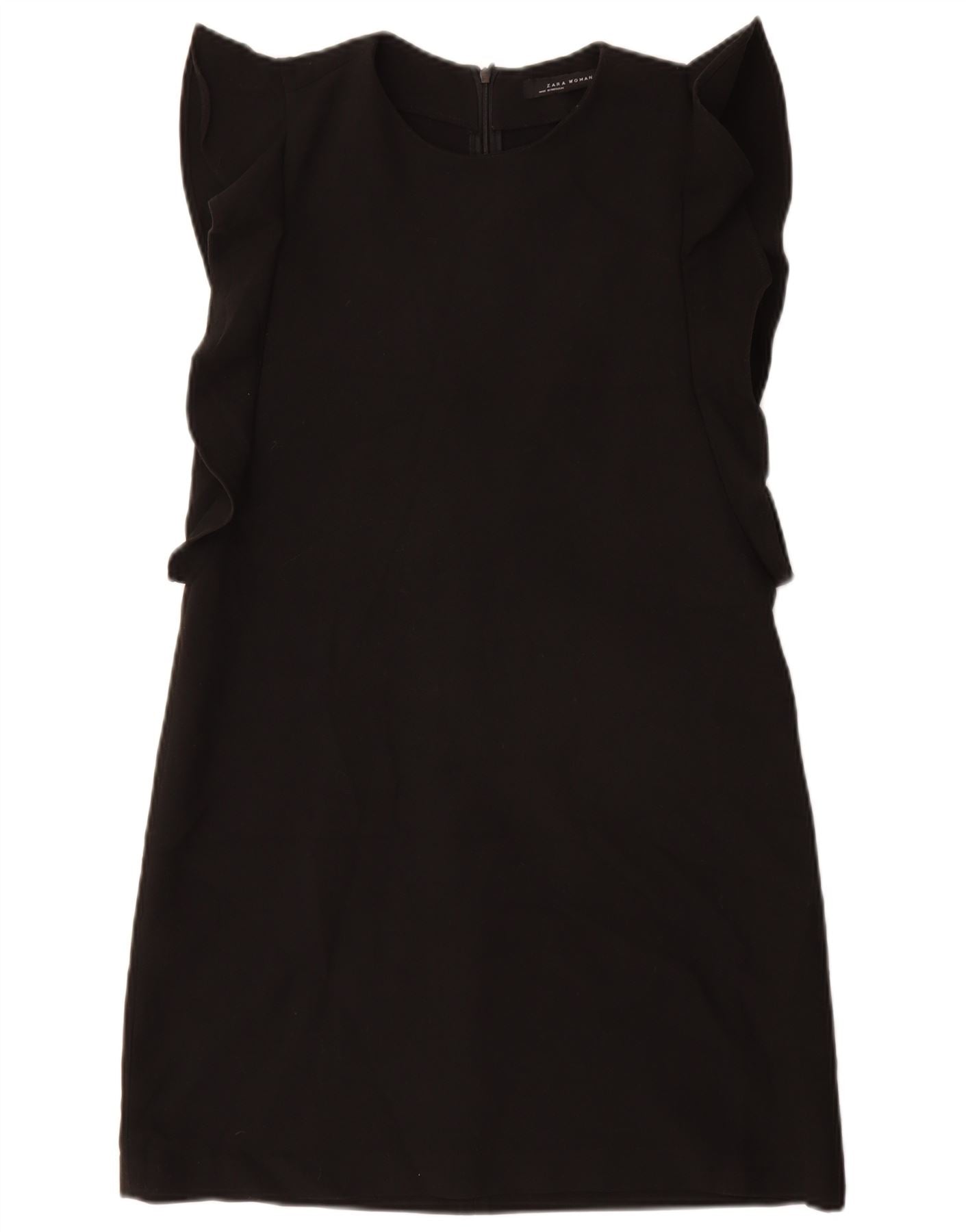 ZARA Vestido feminino sem mangas com bainha UK 12 Médio Preto