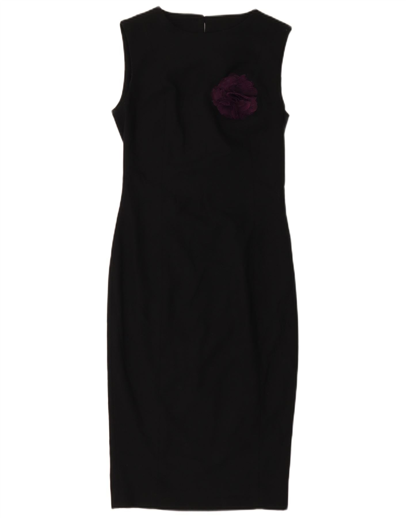 ZARA Vestido feminino sem mangas com bainha UK 4 XS preto floral poliéster