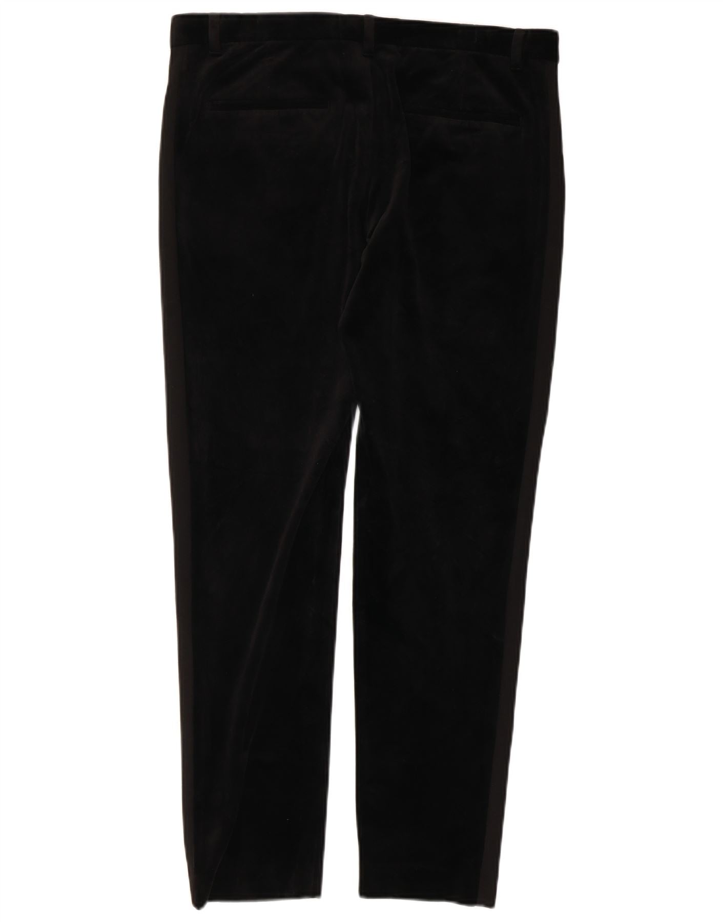 - Descrição da IA: Estas calças femininas da Zara são confeccionadas em luxuoso veludo preto, oferecendo uma textura macia e rica. Painéis laterais de algodão liso proporcionam um contraste sutil. Eles apresentam um ajuste regular com perna reta. Um fecho de correr elegante protege a frente. Bolsos práticos estão integrados ao design. O estilo clássico garante um uso versátil.