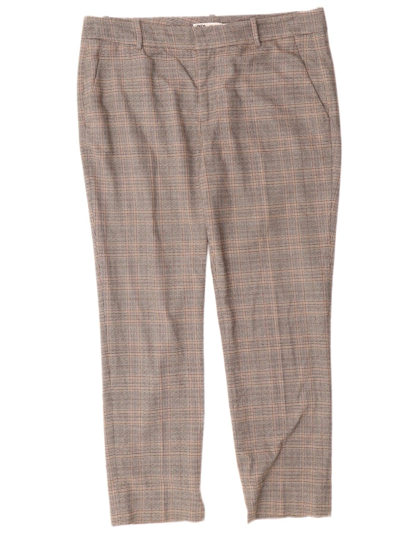 ZARA Calça Chino Feminina Slim Fit EU 42 Grande W32 L27 Cinza Xadrez