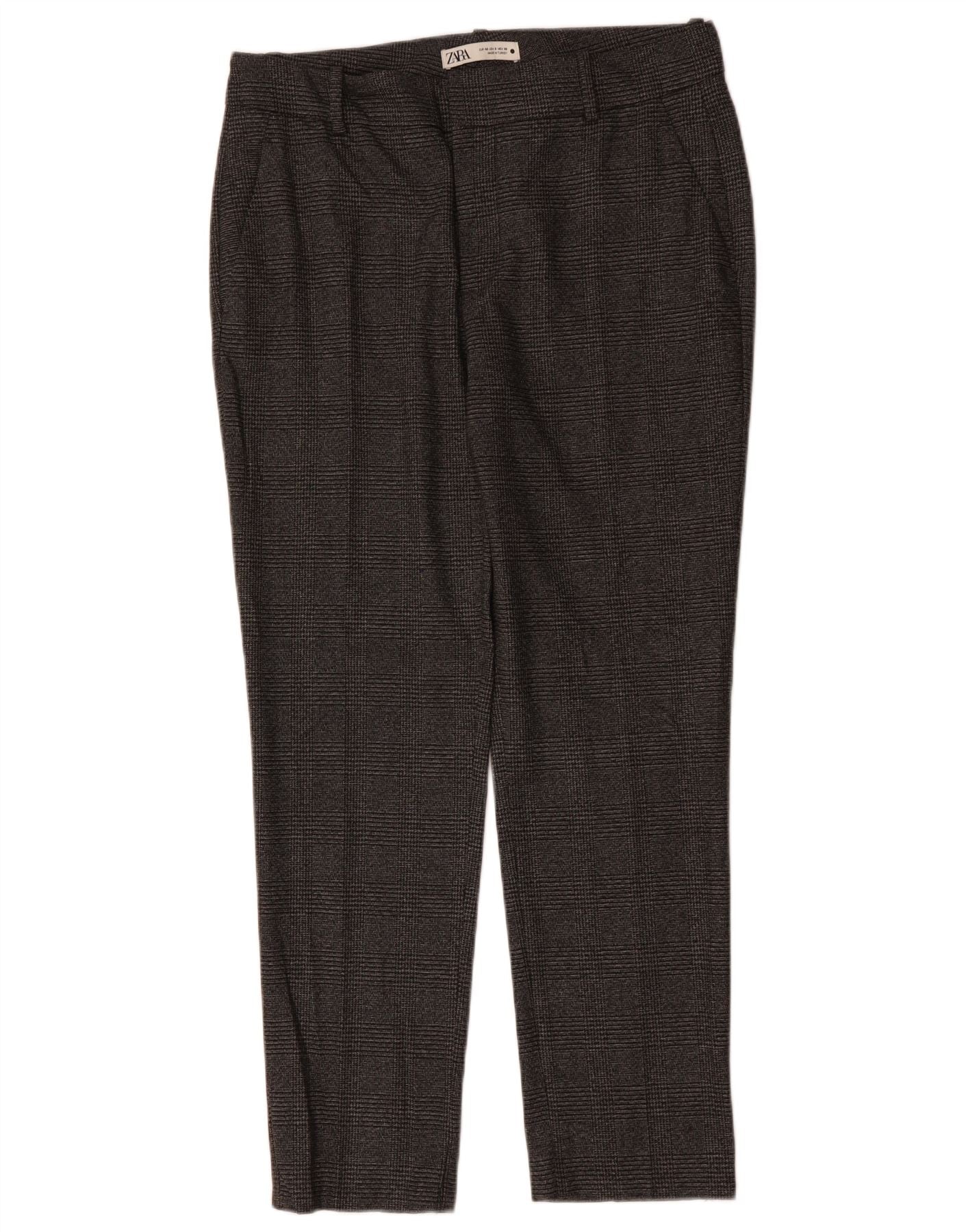 Calça feminina ZARA Slim Suit EU 40 Médio W30 L29 Poliéster xadrez cinza