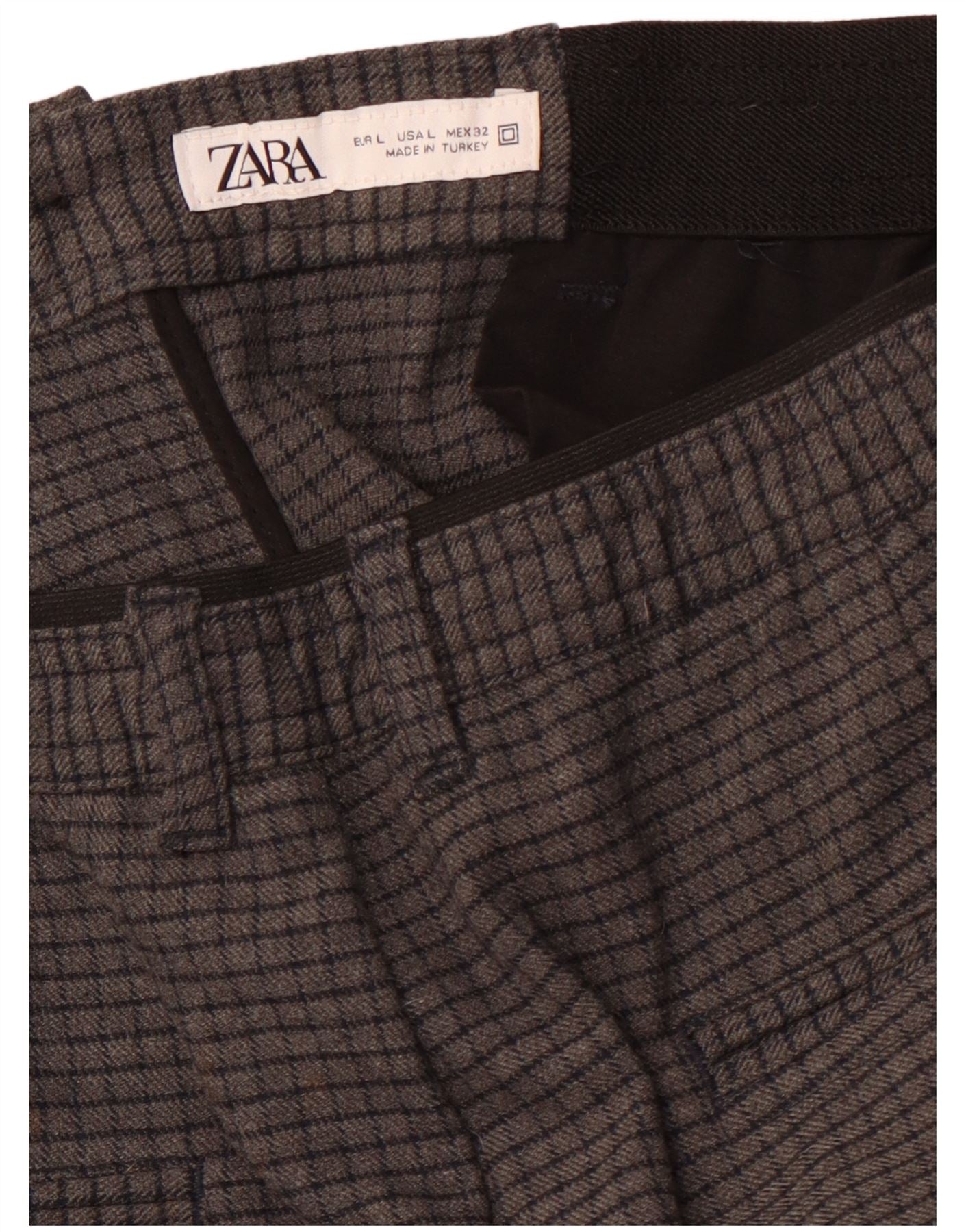 Calça Chino Cônica Feminina ZARA Grande W34 L27 Xadrez Cinza