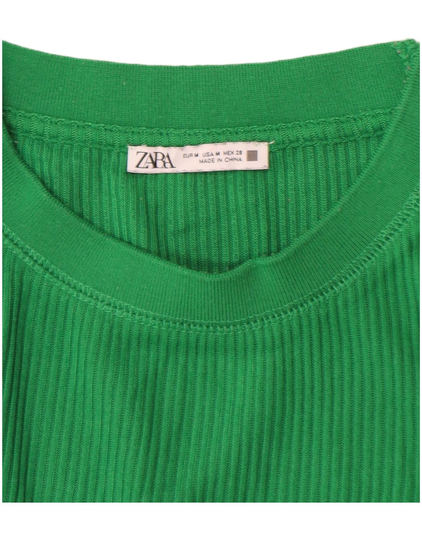 Top feminino ZARA manga comprida UK 14 verde médio