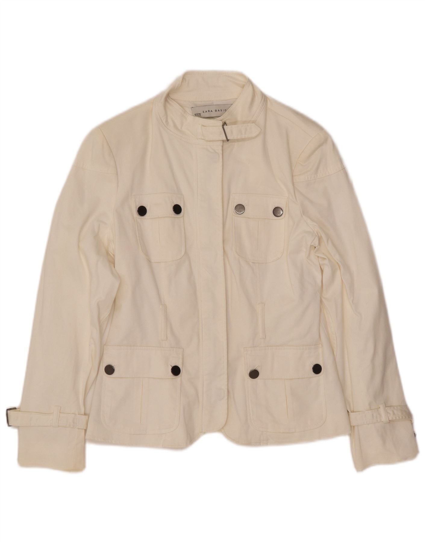 Jaqueta utilitária feminina ZARA UK 12 algodão branco médio