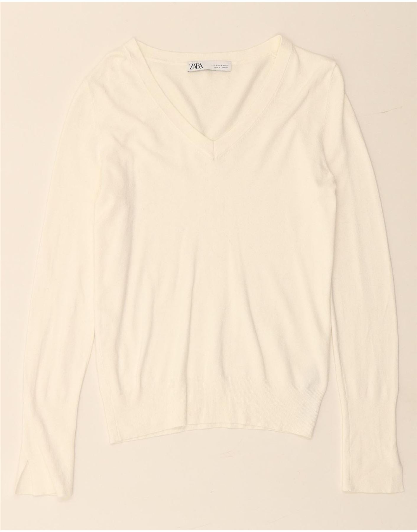Suéter feminino ZARA com decote em V Reino Unido 10 pequeno viscose branca