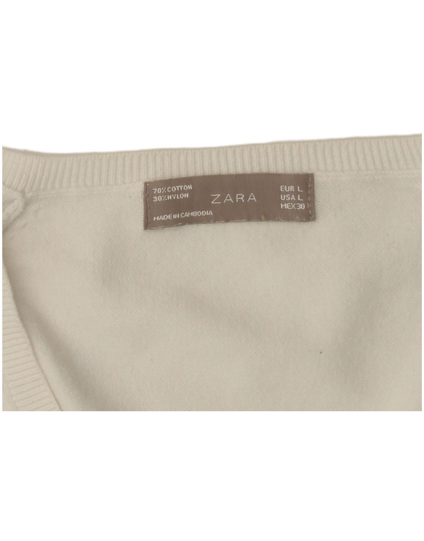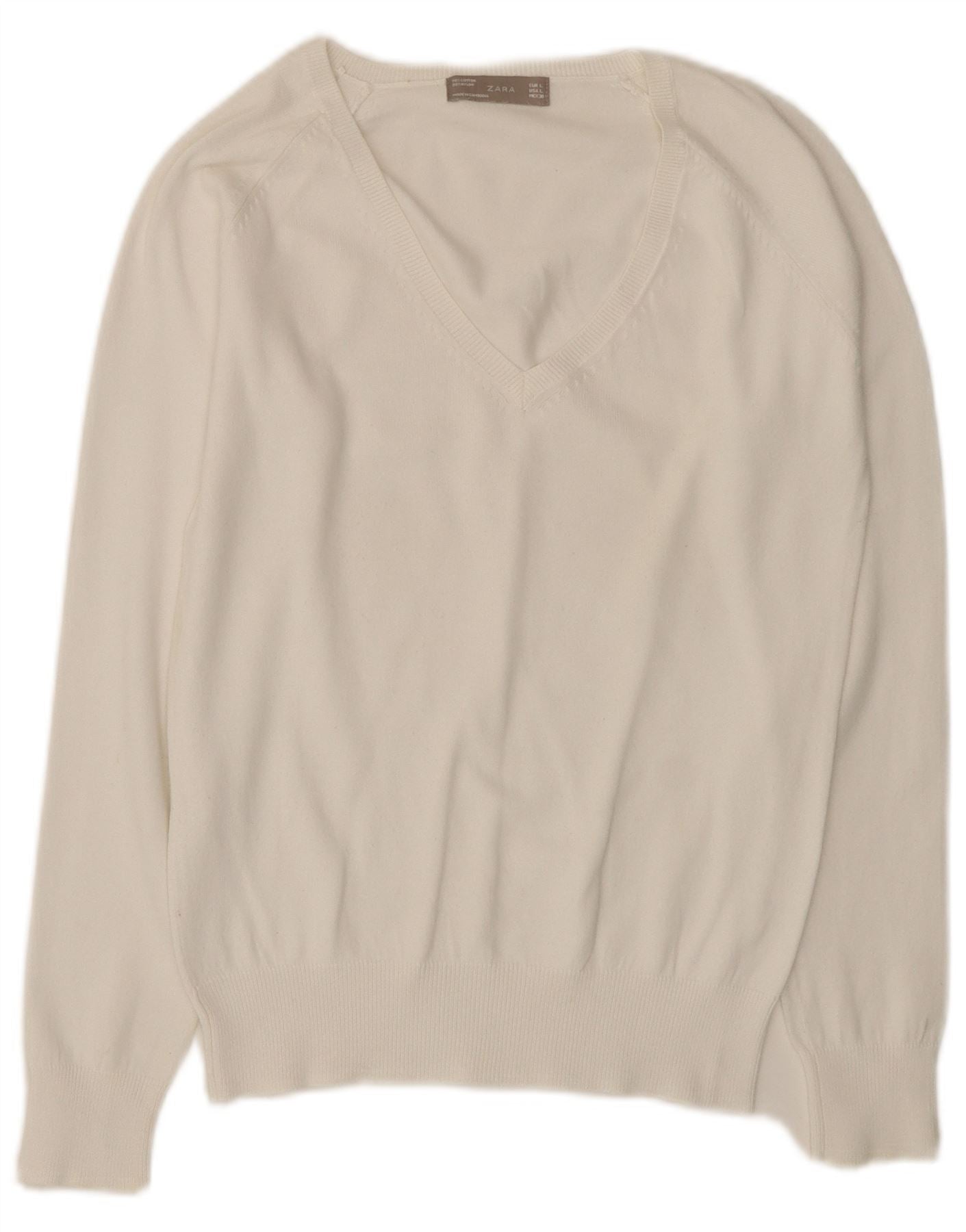 Suéter feminino ZARA com decote em V Reino Unido 14 grande branco