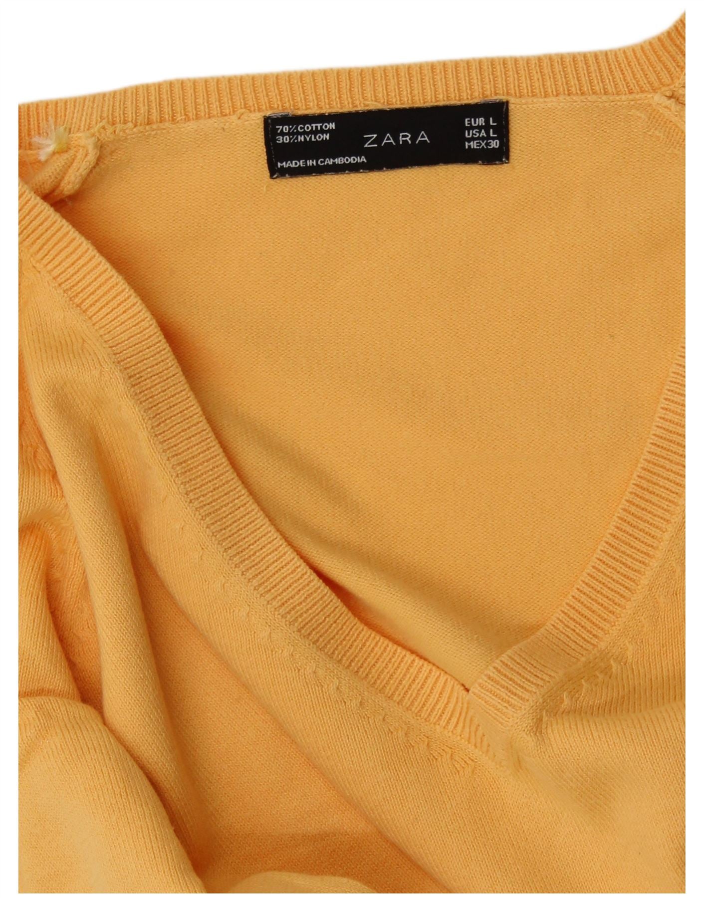 Suéter feminino ZARA com decote em V Reino Unido 14 grande algodão amarelo