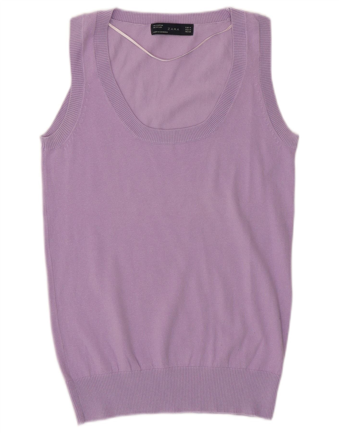 ZARA Womens Vest Tank Top UK 14 Médio Algodão Roxo