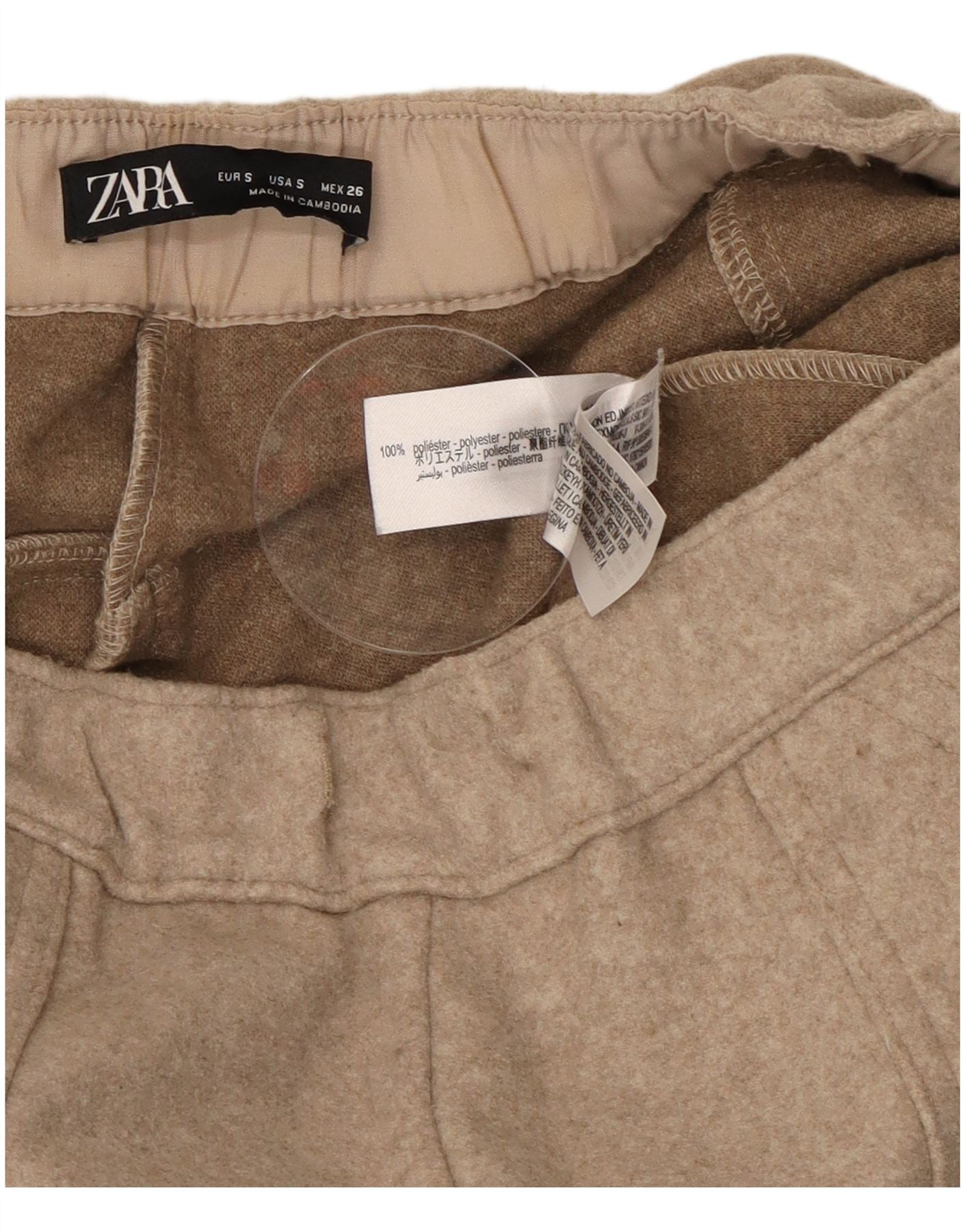 Zara Calça feminina casual de perna larga pequena W26 L29 poliéster bege