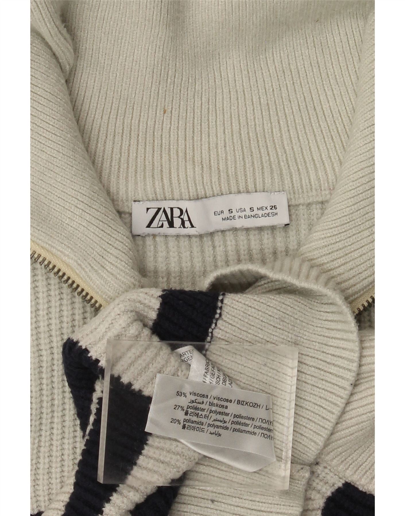Regata feminina Zara com zíper e gola grande, colete grande, Reino Unido 10, pequeno, listrado branco